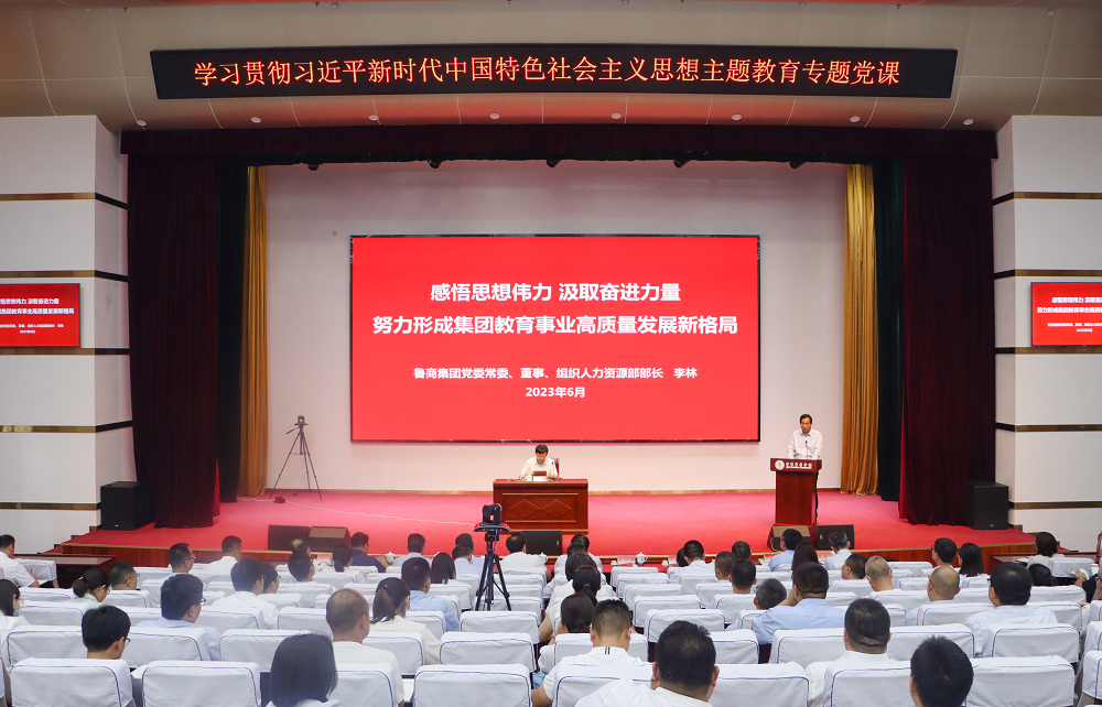 为扎实开展学习贯彻习近平新时代中国特色社会主义思想主题教育,6月8日,鲁商集团党委常委、董事、组织人力资源部部长李林围绕“感悟思想伟力 汲取奋进力量 努力形成集团教育事业高质量发展新格局”为集团所属院校党员干部讲专题党课。