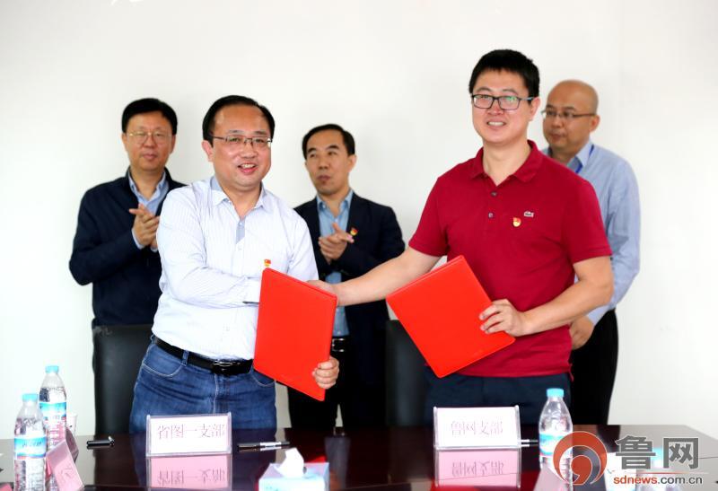 本着“学习交流、共同提高、双向受益”的原则,省图第一党支部书记吴金敦与鲁网党支部书记陶克,分别代表双方签订结对共建协议。