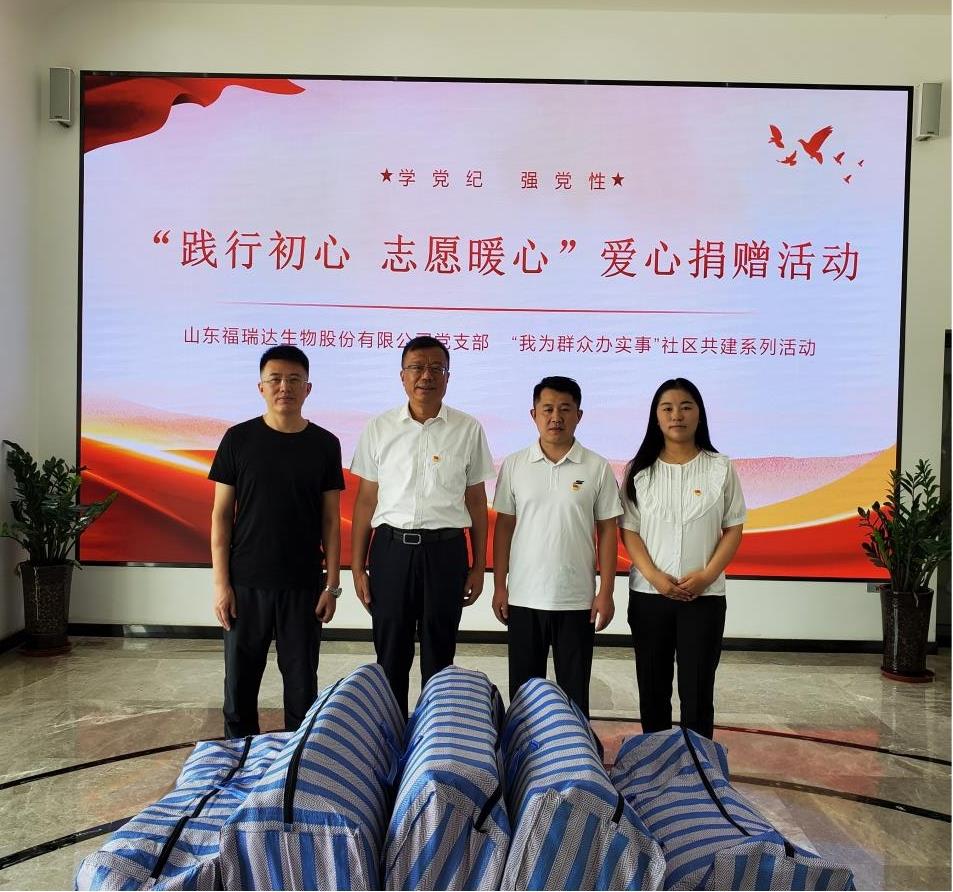 福瑞达生物党支部开展“践行初心 志愿暖心”爱心捐赠活动,为社区困难群众捐赠了百余套床单被褥等生活物品,帮助困难群众改善生活条件、送上一份关怀,以高质量发展成果回馈社会大众。