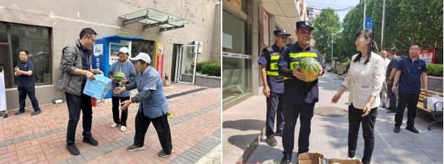 6月中旬,省内迎来连续高温,鲁商服务党委领导班子分别前往项目,慰问一线职工,为他们送去了矿泉水、西瓜等解暑物资,感谢职工奋战在项目一线,叮嘱他们外出工作时要做好防暑降温措施,确保身体健康和劳动安全。同时,督促各基层项目要全面落实好安全生产主体责任和夏季安全生产措施。