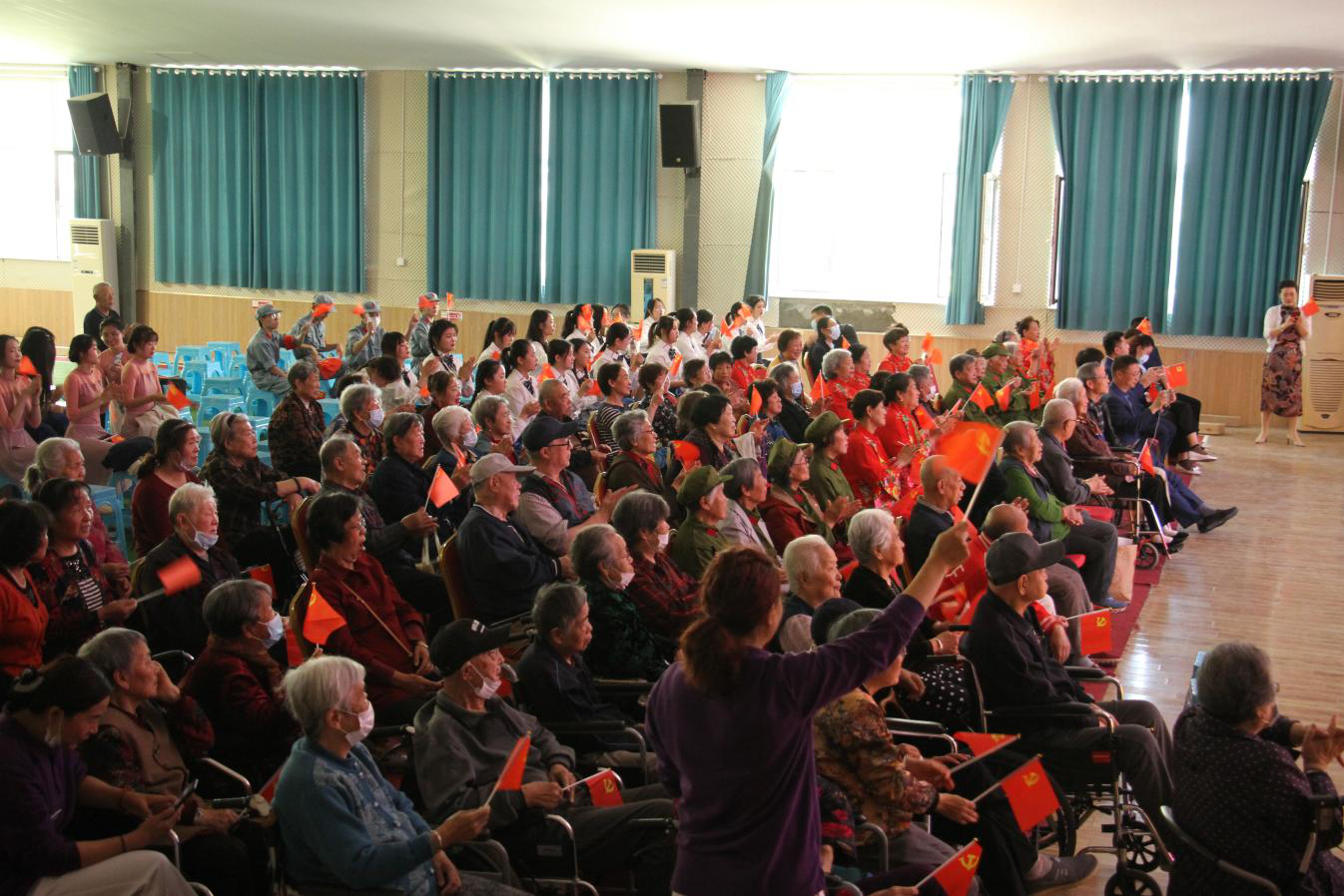 活动在宛转悠扬的歌曲《南泥湾》中开场,之后《东方红》、《春天里的故事》等节目陆续精彩呈现。刁洪斌、宋华西和初君梅三位同志作为本次学党史宣解员,分别根据革命歌曲进行生动的党史背景讲解,把大家带入到那一段段难忘的革命岁月,共同学党史、悟思想。由学院幼教学生演绎的舞蹈《红色记忆》《芳华》舞姿优美动人,深深打动了在场的每一个人。现场老人们表示,很感谢省城市学院党史学习教育宣讲团给他们带来了生机与活力,党史讲解内容鲜活生动,让他们又重温了那段往昔峥嵘岁月。