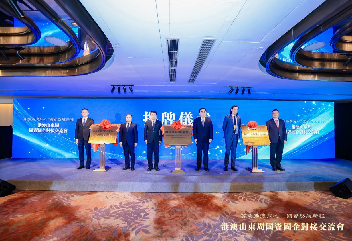 5月21日,“好品山东澳门推广中心山东选品平台”在港澳山东周国资国企对接交流会上举行揭牌仪式。山东省政协常委、澳门山东社团总会理事长陈捷,完美平台党委副书记、董事、总经理朱华建共同为平台揭牌。