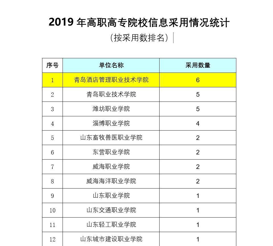 1月10日,省教育厅办公室公布2019年度信息报送情况,青岛酒店管理职院2019年被省教育厅采纳信息6篇,在公布的全省高职高专院校中排名第一。